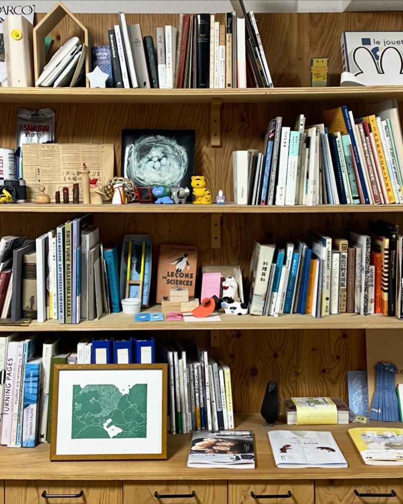 kasiの本棚は千葉さんのデザインした本や千葉さんの集めてきたかわいいものが並んでいて、すごく楽しい。そんな場所での教室です。