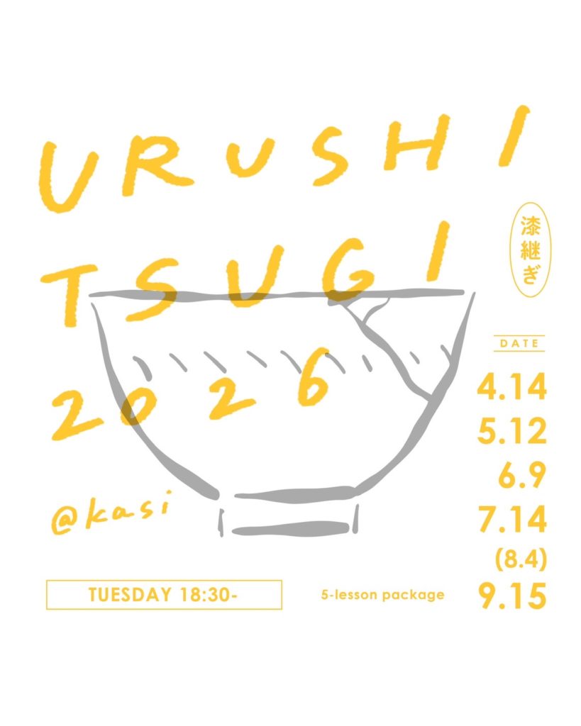 お申し込みの際は件名「kasi漆継ぎ教室2026申込」としてお名前、ご住所、電話番号、道具の有無をお知らせ下さい。